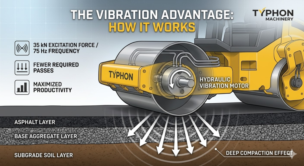 - 75 Hz Frequency: This high-frequency vibration rapidly settles subgrade soil, aggregate bases, and hot mix asphalt, driving out air voids efficiently.